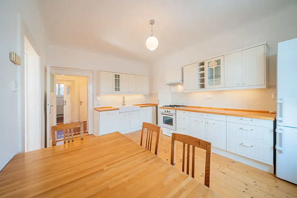 Nabízíme od 1. 3. 2026 (případně dříve – na dotaz) k pronájmu prostorný byt 5+1 ve stylové prvorepublikové vile ze 30. let ve vilové čtvrti Prahy 4 – Modřany, ulice Nečova. Ideální pro rodiny vracející se do Prahy ze zahraničí nebo pro expaty hledající autentické bydlení s charakterem. Nabídka je obzvlášť vhodná pro rodiny s dětmi díky blízkosti Prague British International School – Libuš campus.