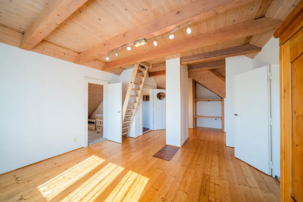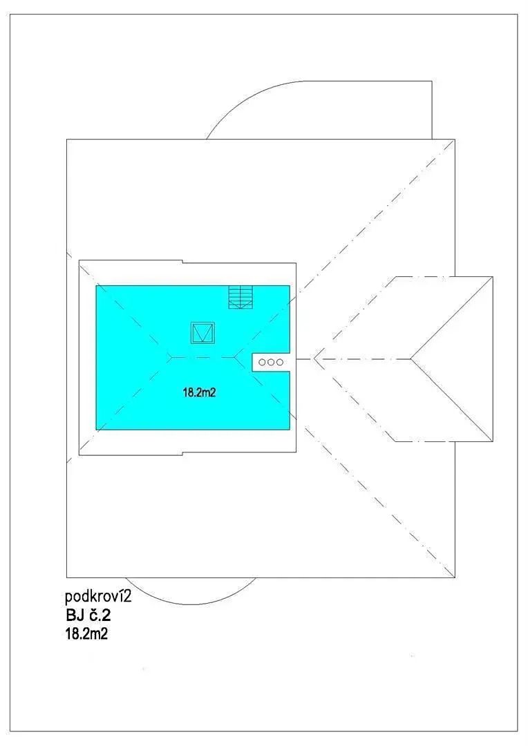 Půda: Pochozí, určená k uložení věcí, přístupná dřevěným schodištěm.