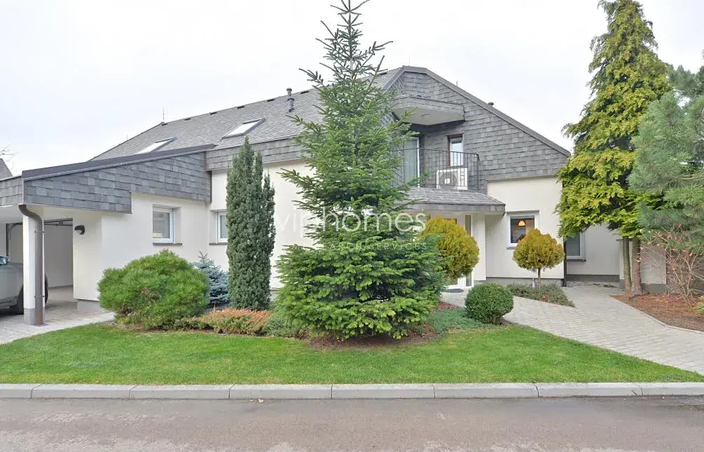 Nově postavený rodinný dům situovaný v rezidenční lokalitě s množstvím zeleně a dobrou dostupností do mezinárodních škol - cca 5 minut jízdy ke školám ISP nebo Riverside School.