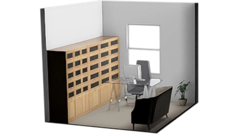 Nabízený prostor tvoří samostatná menší kancelář o velikosti cca 7 m², vhodná pro jedno až dvě pracovní místa. Místnost se nabízí bez vybavení. Kancelář disponuje oknem orientovaným do klidné části objektu. Na chodbě jsou společné prostory jako je WC nebo zasedací místnost, kterou si lze pronajmout za poplatek. Zasedací místnost je vybavena velkým stolem se židlemi, křesly, televizemi a dalším nábytkem včetně kuchyňské linky s dřezem a lednicí.