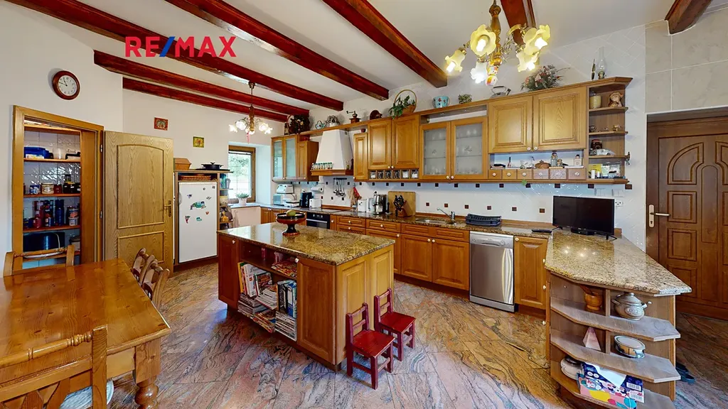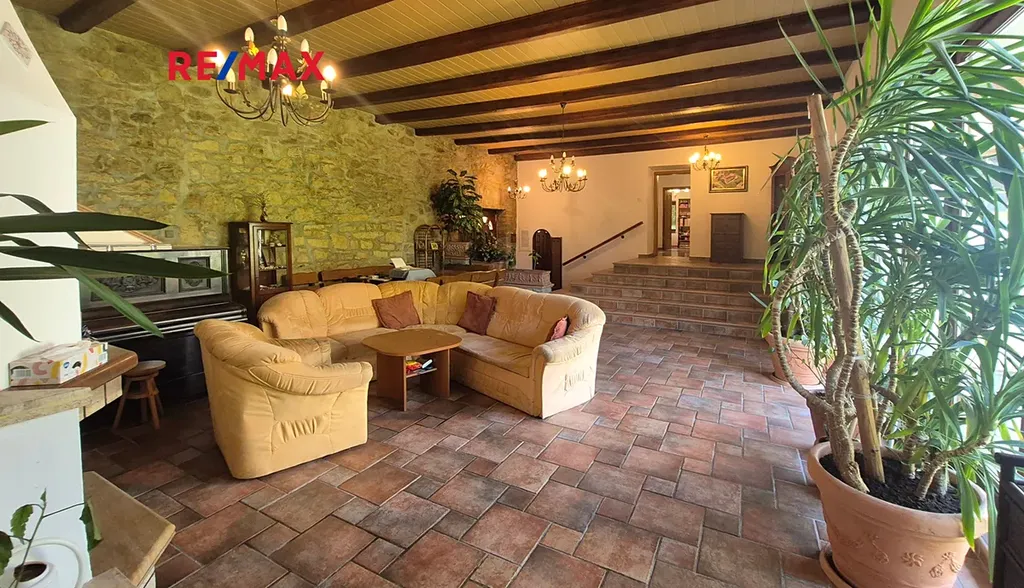 Usedlost byla před 25 lety kompletně zrekonstruována, části byly zcela přestavěny nebo dostavěny. Dům je stále využíván k trval. bydlení, tedy je pravidelně udržovaný, rozčleněný na obytnou část, nebyt. část a relaxační část. Přízemní část domu se sestává z obytné haly (obývac. pokoje) s proskleným výhledem do dvora, pracovny, 2 dětských pokojů, ložnice, koupelny s WC, kuchyně a spíže. V domě jsou v suterénu 2 krásné klenuté sklípky. V celém přízemí je podlahové vytápění, ve velké hale a v pracovně je krb. V celém domě je položena kvalitní dlažba z dovozu.