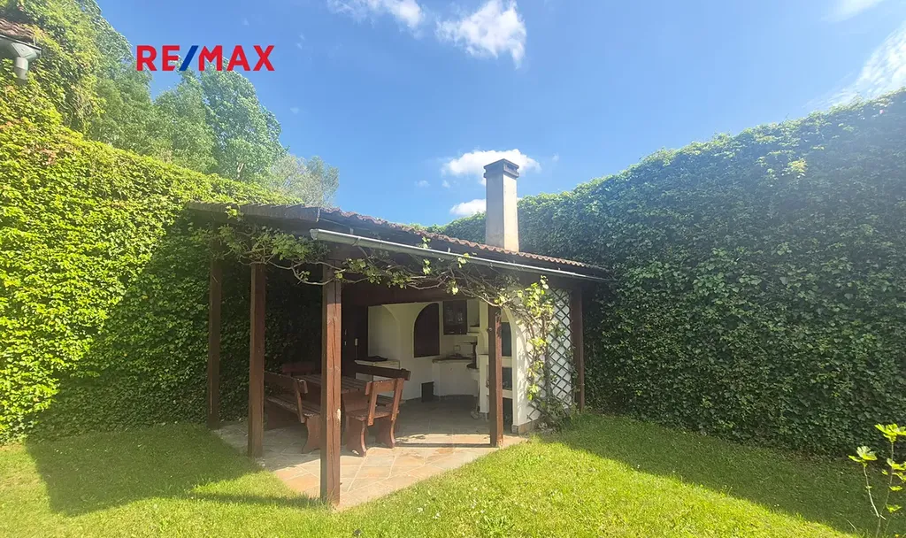 Z obytné části se dá vejít do dvora, kde se nachází nebyt. část s kotelnou, WC a umyvadlem. Dvůr je uzavřený, nachází se zde zastřešené podloubí (42,70 m2) podél celé délky vnitřního bazénu, do kterého je vstup ze dvora prosklenými posuvnými dveřmi. Bazén je plně funkční. Na stavbu bazénu navazují další nebyt. prostory, a to: černá kuchyně, ve které se nachází kamna na TP, el. sporák a je zde zavedený přívod SV i TV, dále komora a dvě velké garáže. Na uzavřeném dvorku se dále nachází zastřešený přístřešek 8,30 m2 s posezením u krbu, udírny a pecí na pizzu. Zahrada za domem je pravidelně a krásně udržovaná.