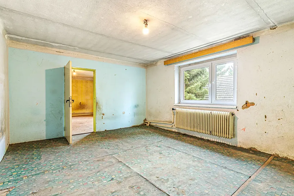 Exkluzivně nabízím na prodej v Klobukách rodinný dům určený k převážné rekonstrukci s garáží, dílnou a kůlnami o celkové podlahové ploše cca 166 m².