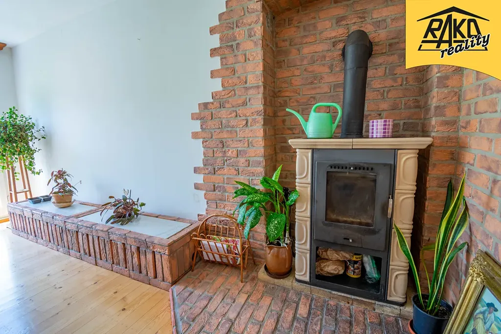 Příslušenství: menší terásku se vstupem z obývacího pokoje, dřevěný přístřešek na sušení prádla, zahradní chatka – úložný prostor, kryté venkovní sezení – letní kuchyň.