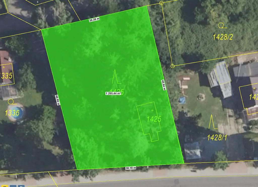 - Rozměry cca 30 × 43 m místo na dům 150200 m + garáž + bazén + dílnu + velkou zahradu