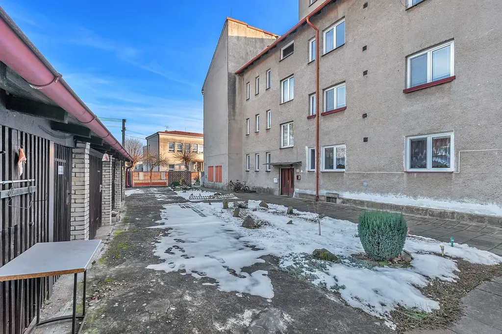 K bytu náleží také sklep v suterénu budovy o velikosti cca 3 m², možnost využití úložného prostoru na půdě a zároveň uzamykatelný sklad na dvoře.