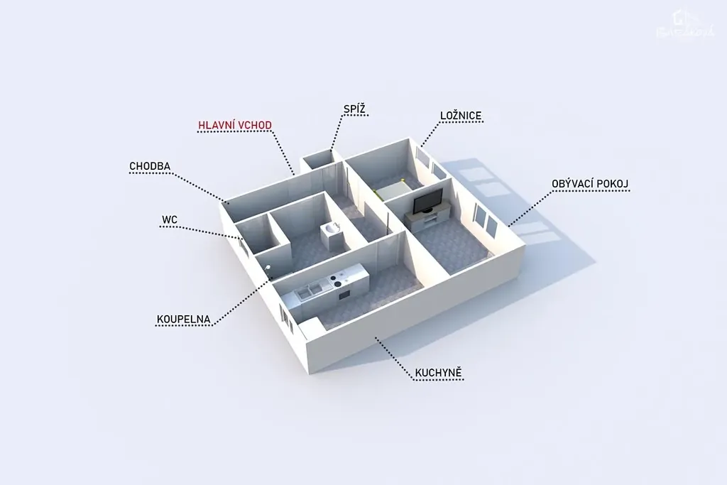 K bytu náleží sklepní kóje a možnost využívat společnou zahrádku za domem.