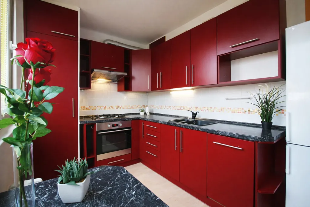 Obývací pokoj navazuje na kuchyň s moderní linkou vybavenou vestavěnou myčkou, elektrickou troubou, plynovou varnou deskou a digestoří. K dispozici je i lednice a odvětrávaná potravinová skříň. Velká okna zajišťují příjemné denní světlo, v ložnicích orientovaných na jihozápad jsou pro lepší tepelný komfort instalovány termoizolační fólie. Jedna z ložnic má vlastní prostorný balkon s výhledem do zeleně. V předsíni je velká vestavná skříň, koupelna s vanou je oddělená od WC.