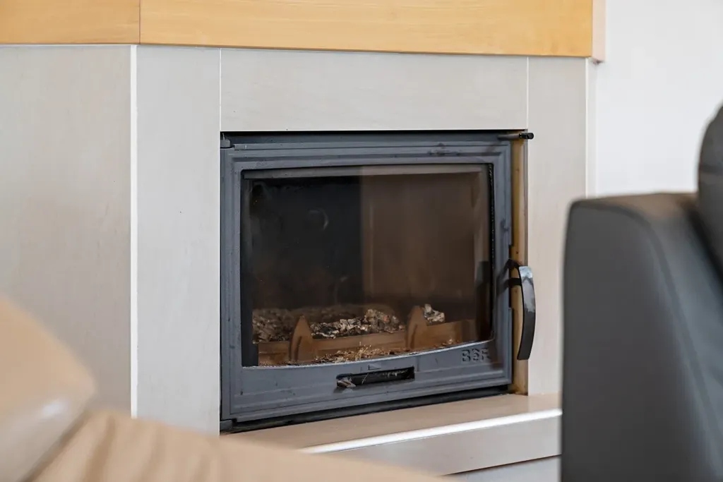 - topení kombinace podlahového topení a radiátorů, krb v obývacím pokoje