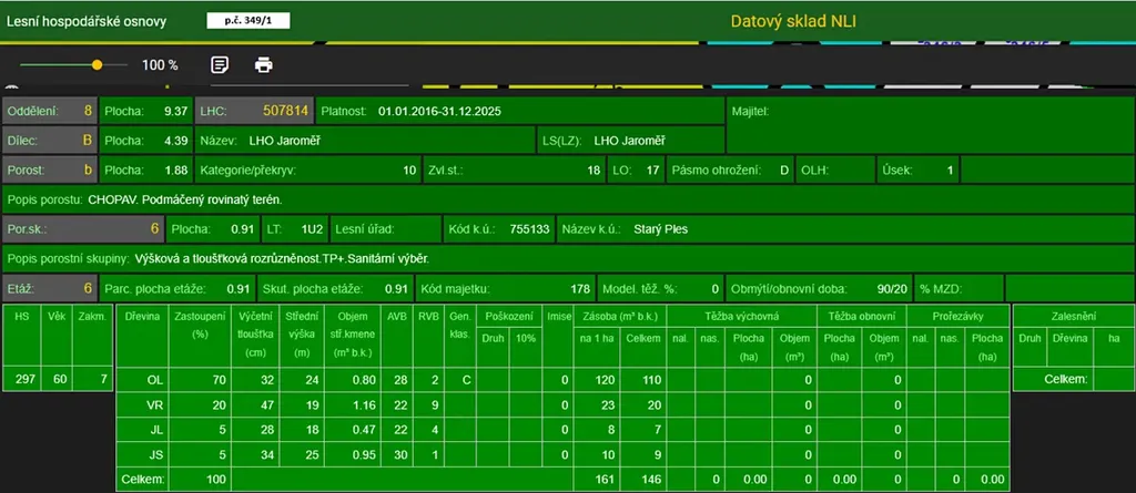 Jedná se o p.č. 349/1 vedená jako lesní pozemek o celkové výměře 10 556 m2.