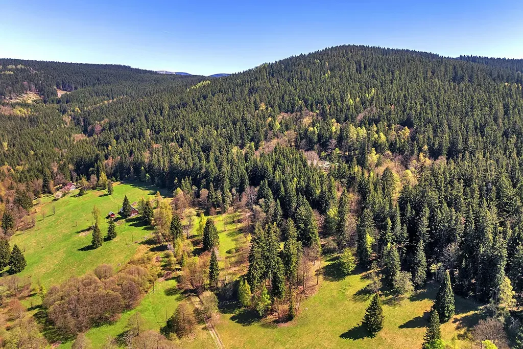 K prodeji je soubor pozemků (lesy, louky) a pozemek určený k výstavbě rodinného domu nebo rekreačního objektu v srdci Krkonoš, v chráněné zóně Krkonošského národního parku, ve velmi atraktivní lokalitě horské obce Vítkovice v Krkonoších. Místo vás nadchne krásnými výhledy a orientací na JZ. Pozemek se nachází na severní stráni směr Janova hora - Černý Důl, v místní osadě zvané Janova Hora. Stavební pozemek je součástí plochy SV - plochy smíšené obytné - venkovské, dále NL (plochy lesní), NZ (plochy zemědělské) a NSp (plochy smíšené nezastavěného území - přirozené a přírodě blízké ekosystémy). Jedná se o soubor pozemků nepravidelného tvaru, evidovaných na LV 847 v katastrálním území Vítkovice v Krkonoších. Celková výměra všech pozemků je 21.708 m2, z čehož plocha, kde lze umístit nemovitost má cca 1700 m2, lesní pozemky jsou 11.936 m2 a trvalý travní porost 7.969 m2. Přístup na pozemek zajišťuje veřejná nezpevněná komunikace. Pozemek neobsahuje přípojky inženýrských sítí, lze napojit na elektřinu, voda je řešena místním zdrojem na vlastním pozemku, odpady je nutno řešit vlastní ČOV. Součástí prodeje je projekt na výstavbu dvoupodlažní horské chalupy s již neplatným stavebním povolením. Místo nabízí klidné prostředí uprostřed přírody s možností výletů do širokého okolí Krkonoš.