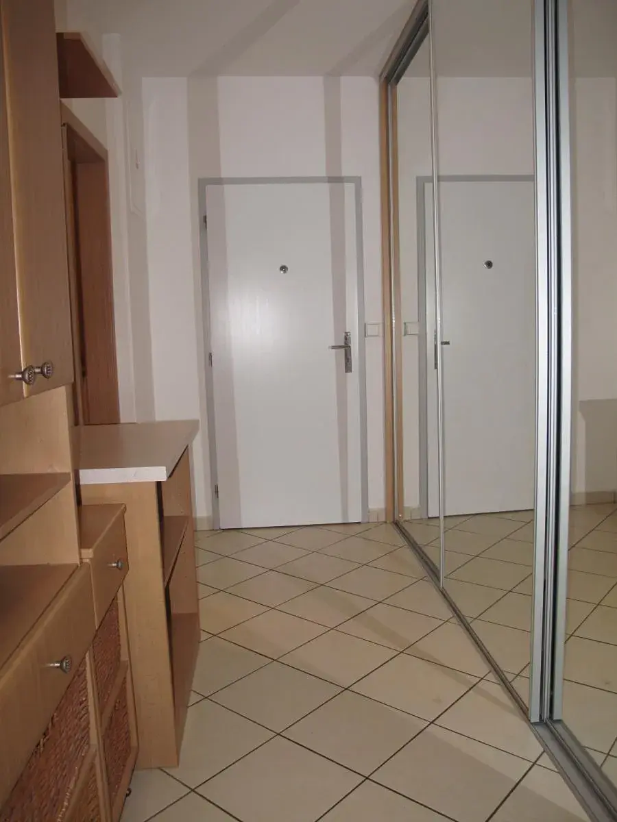 Byt se nabízí částečně vybavený. Součástí kuchyně je prostorná kuchyňská linka s lednicí, elektrickou troubou, sklokeramickou deskou a digestoří. Obývací části dominuje pohodná černá kožená sedací souprava. Spací část je oddělena zdí, což umožňuje prostor využít téměř jako 2+kk. Součástí vstupní chodby je velká třídveřová prosklená vestavěná skříň s dostatkem úložného prostoru. V prostorné koupelně se nachází vana, umyvadlo se zrcadlem, pračka a toaleta.