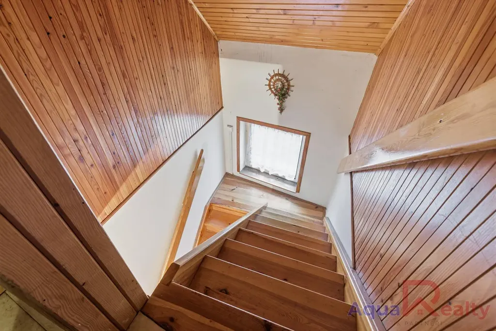Nemovitost je v původním, udržovaném stavu bez předchozích rekonstrukcí. Interiér s dřevěnými okny, původním vybavením a podlahami z PVC, dlažby a korku čeká na modernizaci podle vašich představ. Technické zázemí zahrnuje vytápění plynovým kotlem, které je nově doplněno o krb, ohřev vody bojlerem a napojení na veřejný vodovod i kanalizaci. Rozvody elektřiny jsou původní hliníkové a fasáda domu je z břízolitu.