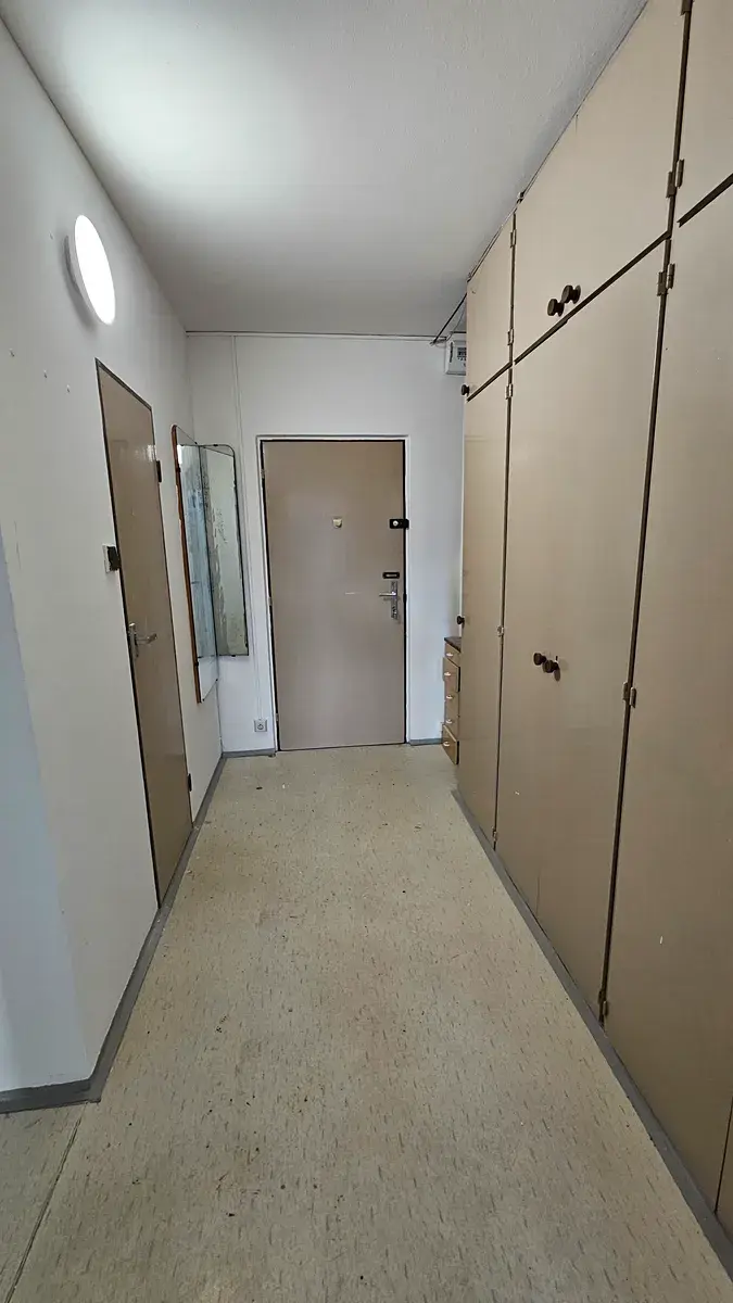 Nyní je čerstvá bílá výmalba, v koupelně byla osazena menší vana, jinak je byt v dobrém stavu.