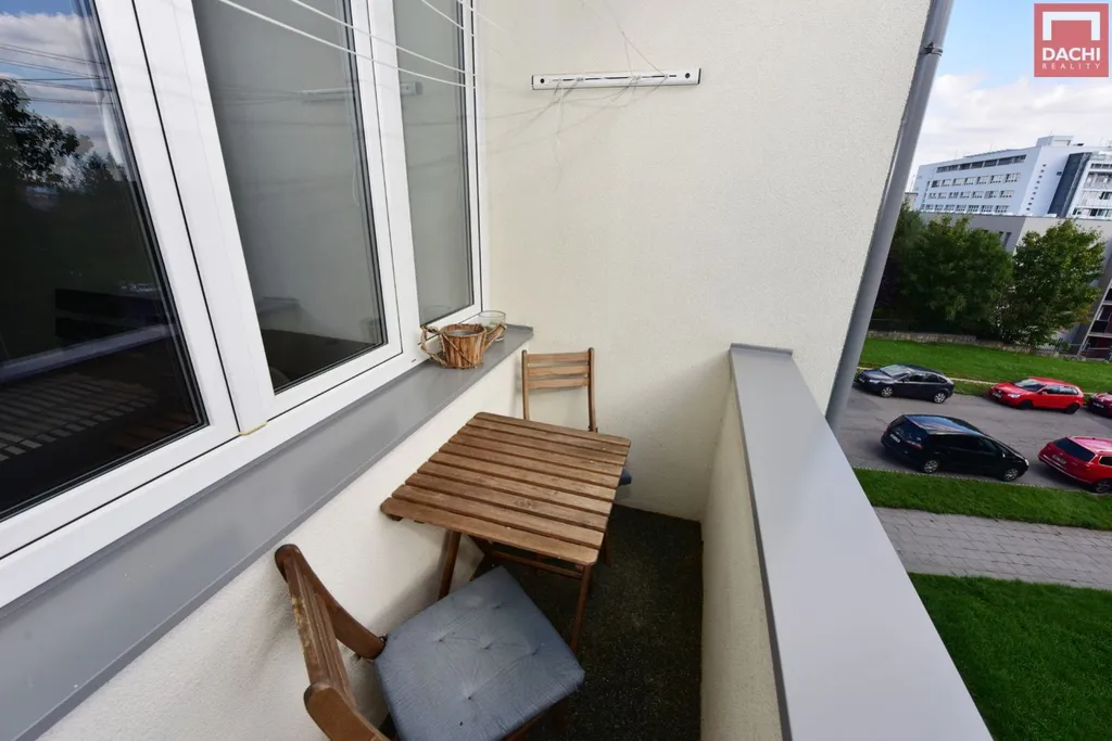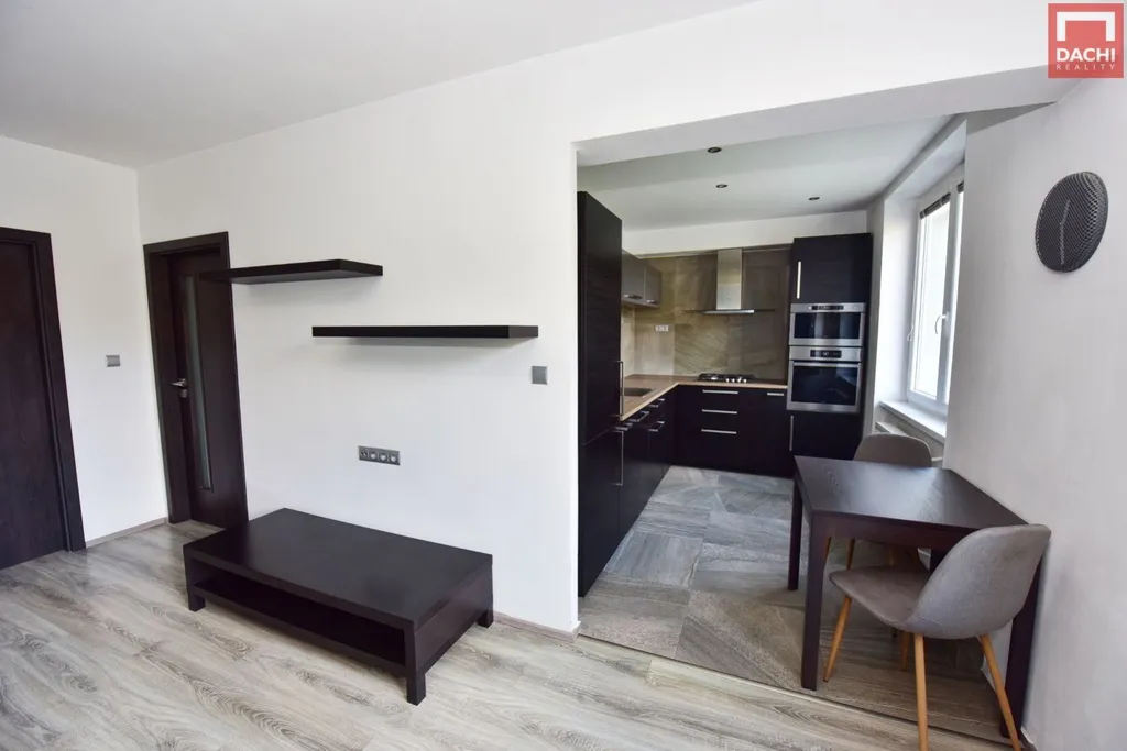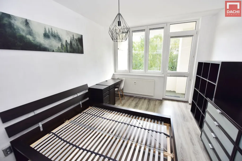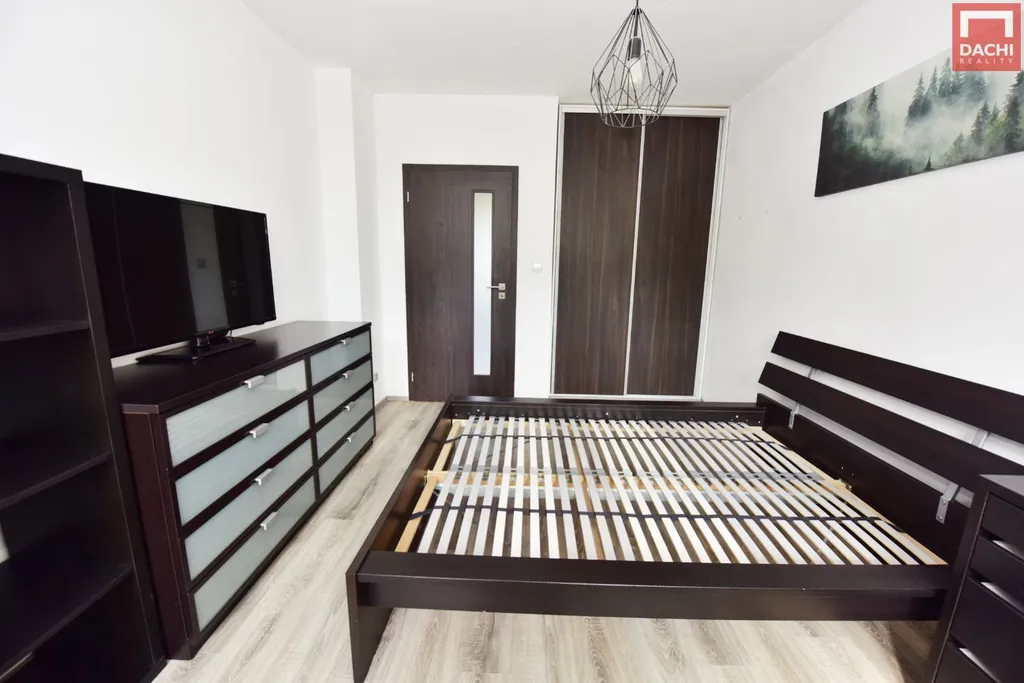 Byt je částečně zařízený k dispozici je kuchyňská linka včetně spotřebičů, úložné prostory, postel s matrací, sedačka.