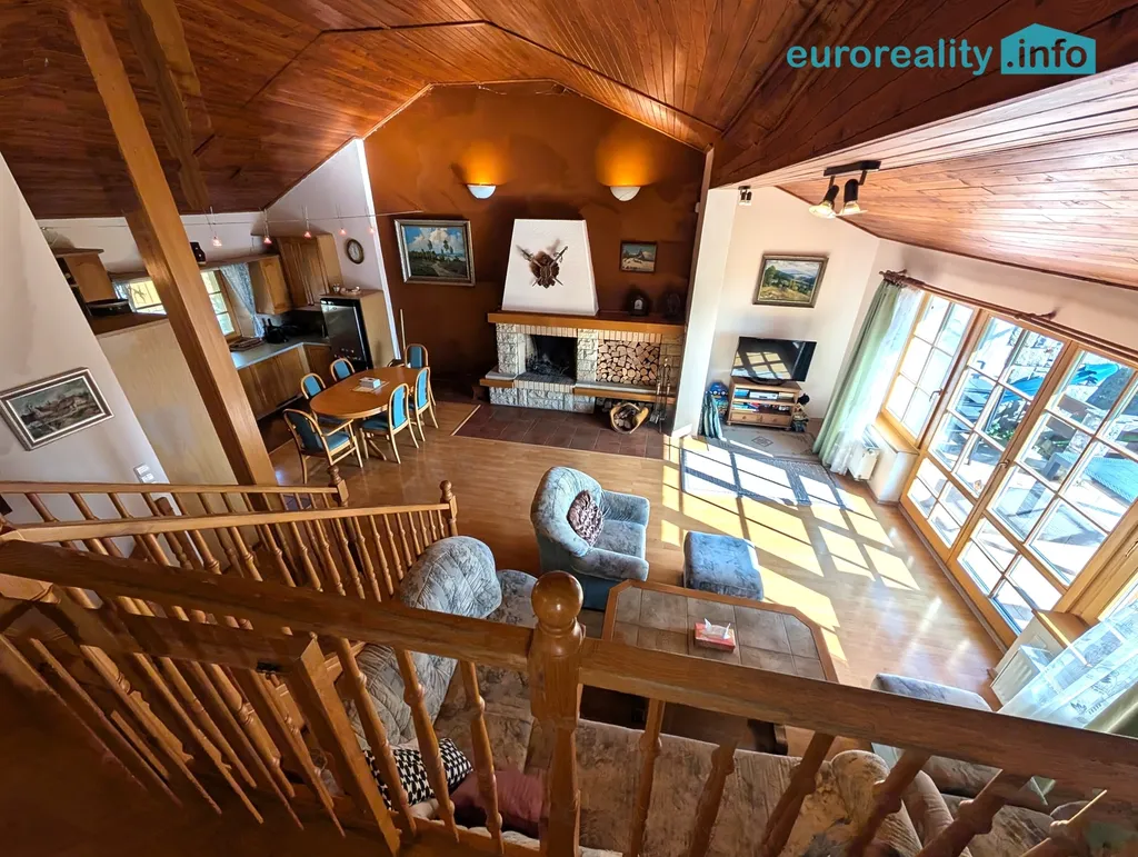 Tento patrový cihlový dům je vhodný jak k rekreaci, tak i případně k celoročnímu bydlení. Má dvě patra a mezipatro a pyšní se prostornou hlavní místností s krbem - obývacím pokojem, kuchyní a masivním dřevěným schodištěm s dřevěným obkladem. Celý dům zaručuje pohodlné a příjemné bydlení i rekreaci. Obytný prostor tvoří pět pokojů, dvě koupelny a samostatné WC, které lze snadno přizpůsobit individuálním potřebám a vkusu.