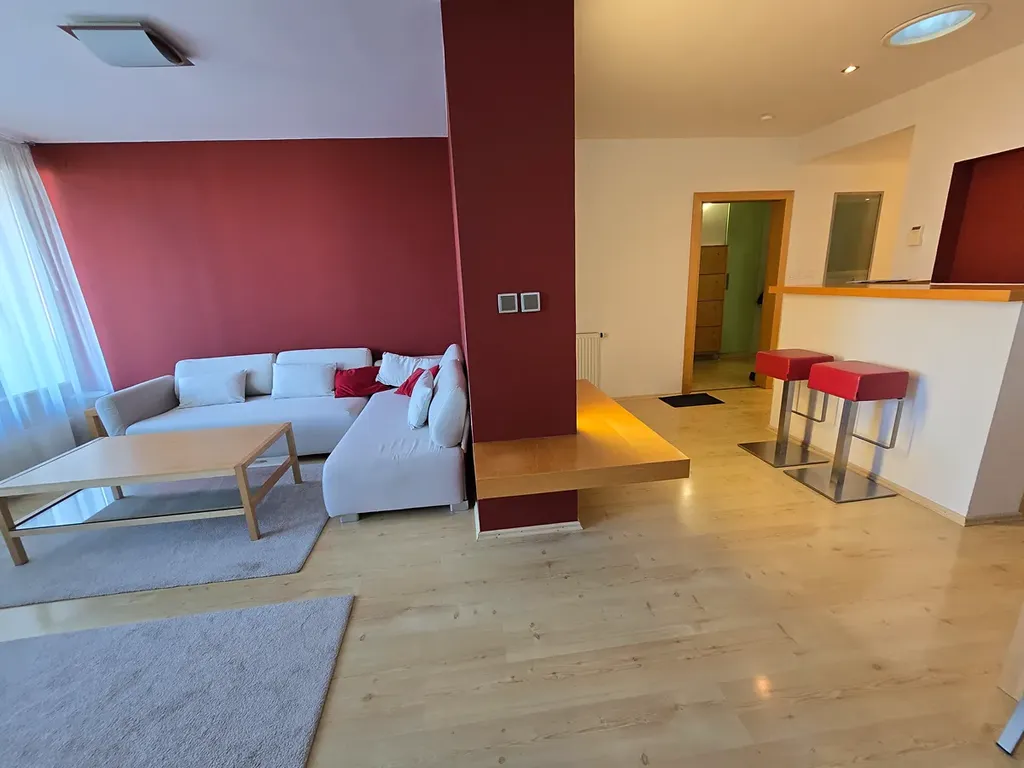 Byt se nachází v 5.NP/6NP a je moderní dostavbou cihlového bytového domu, s novým výtahem.