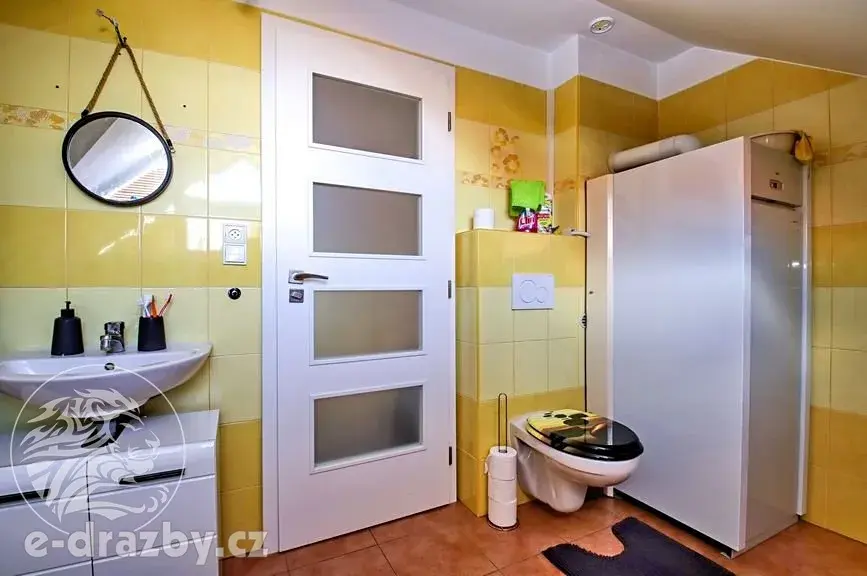 V prvním patře jsou dva dětské pokoje, ložnice a druhá koupelna. I toto patro má přístup na půdu.