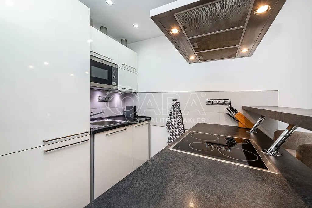 Byt je po kompletní, velmi nadstandardní, rekonstrukci, dotažené do detailu. Tvoří jej dvě prostorné místnosti - obývací pokoj s kuchyňským koutem (20m2) a ložnice (12m2).