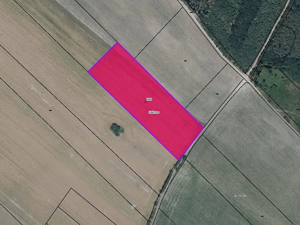 Nabízíme k prodeji pole v k.ú. Liběchov o celkové výměře 18 625 m2 (p,č. 1604). Pozemek je pronajat za tržní nájemné s výpovědní lhůtou 1 rok.