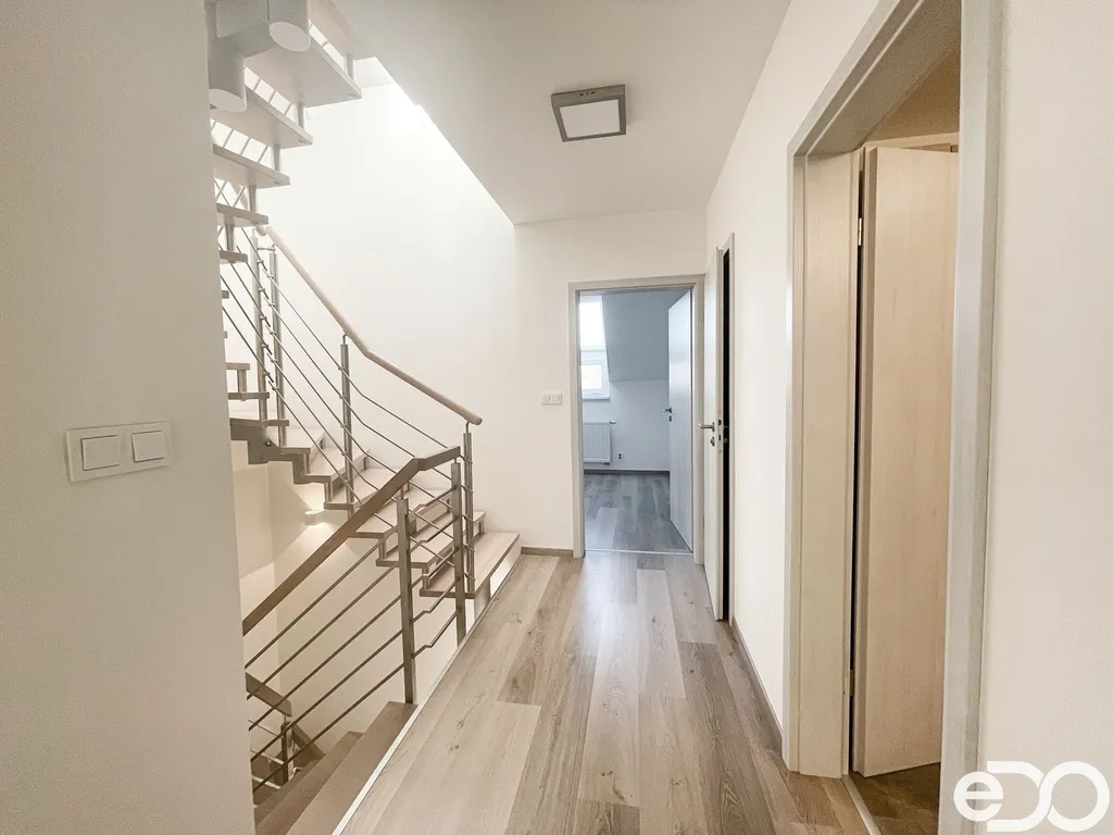 Realitní kancelář eDO Reality Vám exkluzivně nabízí pronájem novostavby řadového domu o třech patrech a dispozici 5+kk. Dům byl postaven v roce 2015, jedná se o energetickou náročnost A, je tedy velmi úsporný, v krásném stavu, velmi slunný se zajímavou dispozicí a zahradou.