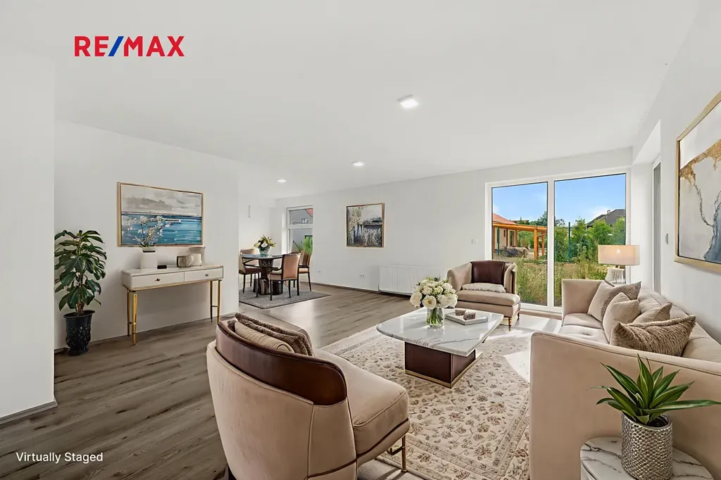 Ráda bych Vám nabídla světlý a prostorný byt 4+kk o výměře 128 m2 v nově dokončeném projektu v atraktivní lokalitě Trnová, Praha-Západ. Tento moderní byt se nachází v přizemi vily postavené v roce 2022, rozdělené na 3 bytové jednotky, každá s vlastní zateplenou garáží a zahradou o rozloze ~200 m2. Projekt poskytuje klidné a komfortní bydlení v lokalitě, která se nachází jen kousek za hranicemi Prahy a je obklopena lesy a přírodou.