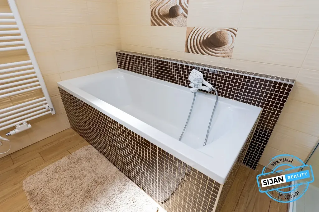 Na udržované zahradě si užijete soukromí i relax – k dispozici je bazén o objemu 20 m³, vyhřívaný tepelným čerpadlem umístěným v garáži. Prostorná terasa s pergolou vybízí k letnímu posezení a rodinným grilovačkám. Samozřejmostí je garáž (32m²) s elektrickými vraty na dálkové ovládání.