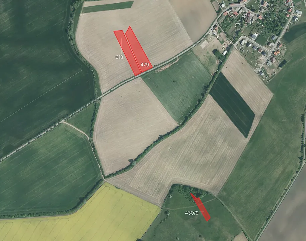 V okrese Kroměříž nabízíme k prodeji soubor zemědělských pozemků ve výlučném vlastnictví o celkové výměře 15 640 m². Pozemky jsou zapsány na třech listech vlastnictví: