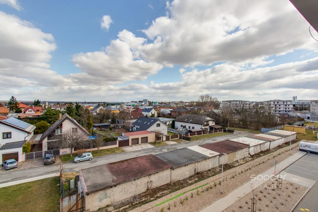 Byt je nadstandardně vybaven plně vybavenou kuchyňskou linkou včetně všech vestavných spotřebičů, na chodbě a v pokoji jsou vestavěné skříně zajišťující dostatek úložného prostoru. Koupelna je moderní a vybavena sprchovým koutem a je společná s WC. Přípojka na pračku je k dispozici v koupelně. Na podlahách jsou plovoucí podlahy a dlažba. Na oknech jistě oceníte venkovní předokenní žaluzie. Všechna okna jsou situovaná na východ. K dispozici je lodžie 4,1 m². Výhled z bytu je velmi příjemný, nikdo vám nebude hledět do oken a narušovat tak vaše soukromí. Před domem se nachází venkovní fitness zóna – posilovna.