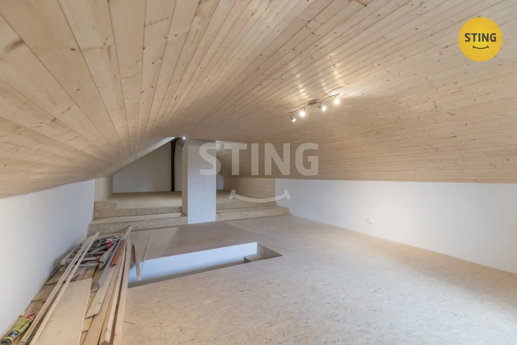 Byt 3+kk o užitné ploše 94,2 m² disponuje dvěma zastřešenými terasami, dvěma vstupy, půdním prostorem, přístřeškem pro dvě vozidla, zahradním domkem a venkovním zázemím před i za domem.