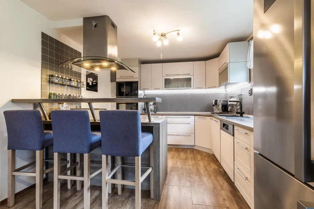 - Prostorný obývací pokoj s kuchyňským koutem, tři ložnice