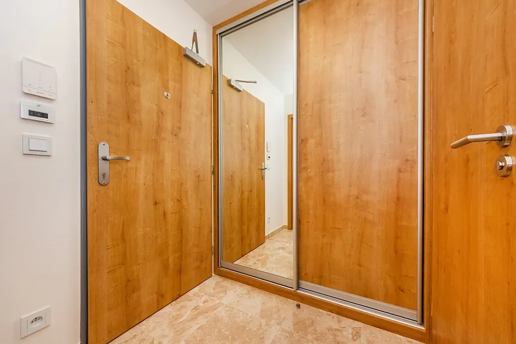 Dosud nebydlený byt je zařízený novou kuchyňskou linkou se elektrickou varnou deskou, troubou, lednicí a myčkou, v koupelně sprchový kout s WC. V předsíni vestavěná šatní skříň.