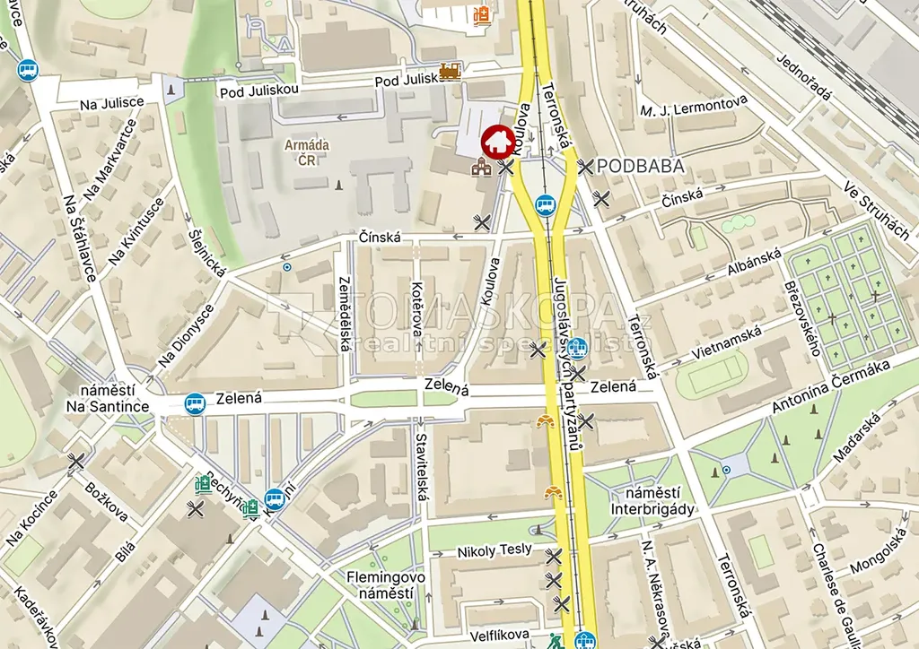 Nabízený byt se nachází v žádané části Dejvic s vynikající občanskou vybaveností a dopravní dostupností – tramvajová zastávka se nachází cca 200 metrů od domu a stanice metra Dejvická je vzdálena přibližně 7 minut chůze. V okolí jsou menší obchody a pro větší nákupy zde máte Kaufland. Dejvice jsou známé nejen kvalitní infrastrukturou, ale i blízkostí přírody – v okolí je Stromovka, Hanspaulka i Šárka. Jedná se tak o ideální kombinaci perfektní dostupnosti po celém městě a zároveň možnosti rychle uniknout do klidné zeleně. Jedná se o centrum vysokého učení, fakulty, menza, kampus). Další podrobnější informace Vám sdělí makléř, stačí zatelefonovat.