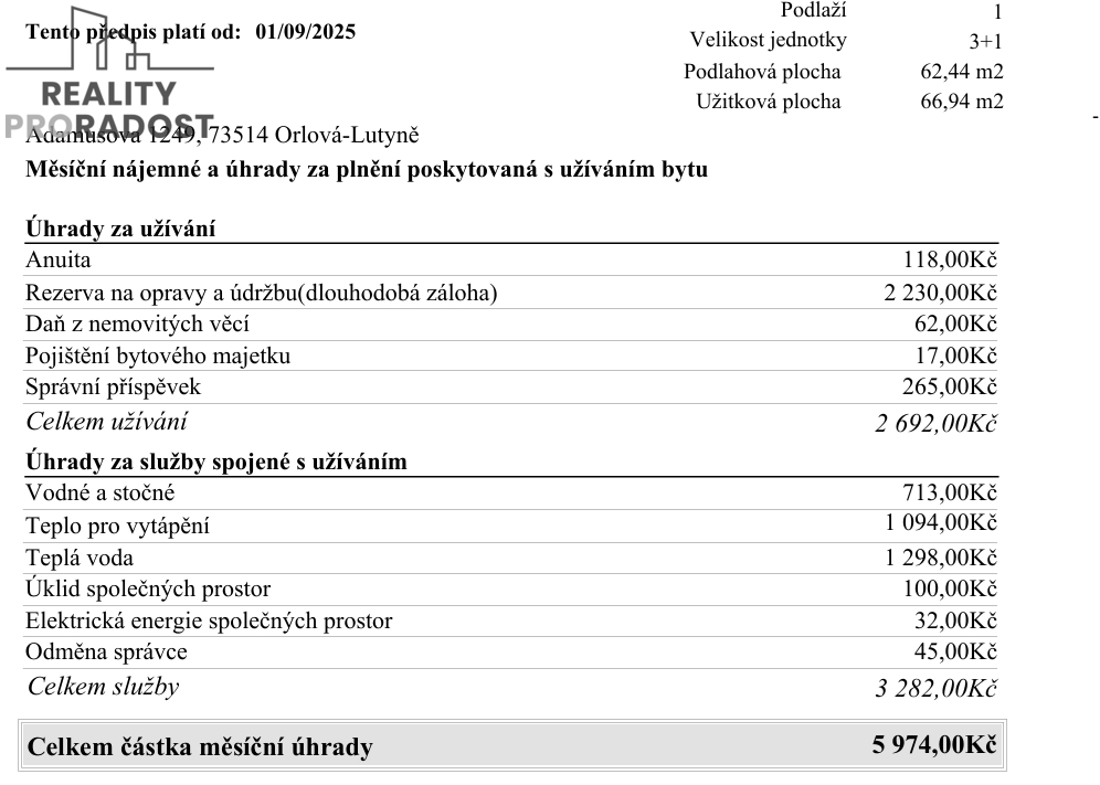 Byt 3+1 s lodžií je o celkové výměře 67m2 a nachází 1.nadzemní podlaží z 9 . na ulici Adamusova v Orlové - Lutyni.