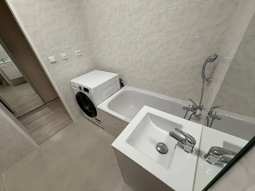 Součástí bytu je také koupelna s vanou a pračkou, která je zahrnuta v ceně prodeje. Toaleta je oddělena, což zvyšuje komfort každodenního užívání bytu.