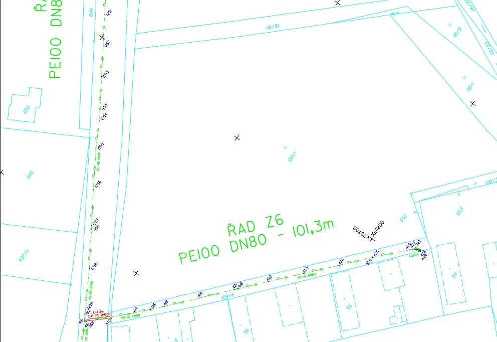 Inženýrské sítě: na okraji pozemků vede veřejný vodovod, ke každému domu je nutné vybudovat vlastní ČOV ( obec dotuje vybudovaní nové ČOV částkou 150.000 Kč), a připojit na stávající kanalizační trubku ve spodní části pozemku. Možnost napojení na elektřinu.