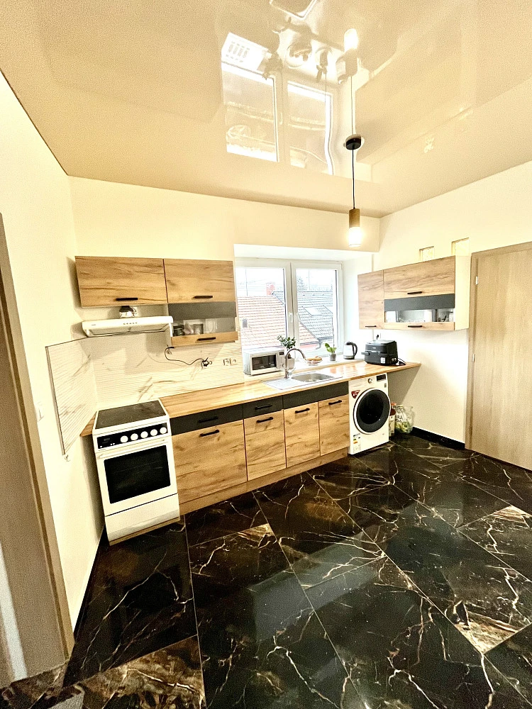 Byt prošel zdařilou rekonstrukcí, která zahrnuje vybudování nové koupelny se sprchovým koutem a WC, novou kuchyní, na stropech byla naistalována stropní deska. Ta má funkci nejen estetickou, ale především zabraňuje unikání tepla a pronikání hluku.