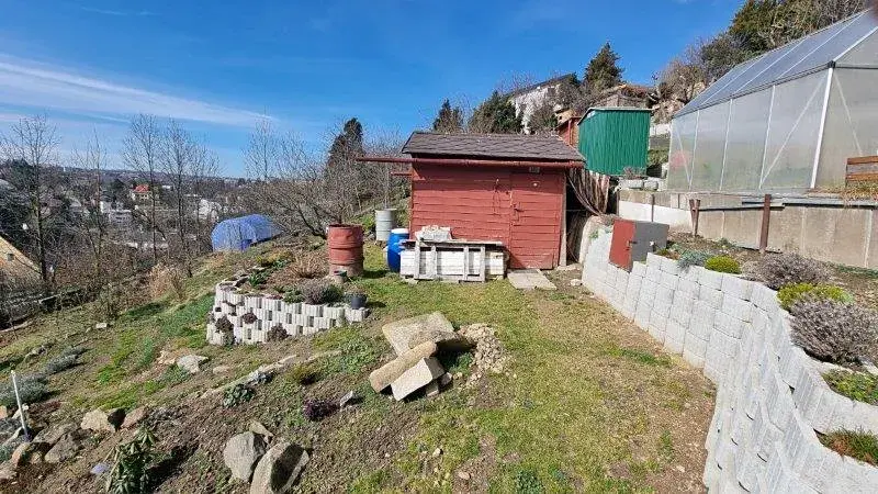 233 Prodej průběžně udržované dřevěné chatky s vlastním pozemkem o výměře 314 m2 v zahradní kolonii v Jihlavě, Hruškových Dvorech a s podílem na přístupové cestě. Jedná se o skromnou částečně podsklepenou chatku ( jedna obytná místnost cca 6 m2 ). Na pozemku je skleník a nová kolna na nářadí s chemickým WC. Na pozemek je nově přivedena elektřina a sezónní vodovod. Jedná se o jižní svažitý pozemek s terasovitými záhony ( nové opěrné zdi ) s výhledem na Jihlavu. Ihned volná. - 850.000,- Kč včetně provize