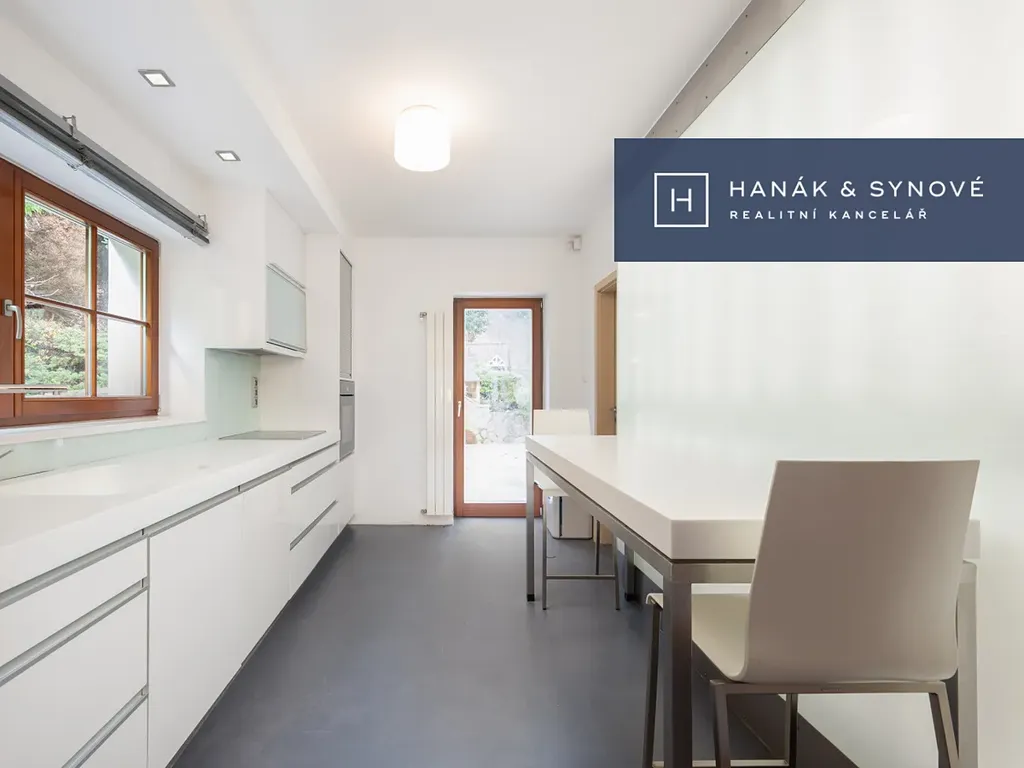 Na pozemku se dále nachází samostatně stojící garáž pro pohodlné parkování dvou vozů, další parkovací místa jsou k dispozici za automatickou vjezdovou bránou. Velkým benefitem je nově vybudovaná přístupová cesta mezi garáží a domem, která je vyhřívaná a plně osvětlená, což zajišťuje maximální komfort zejména v zimních měsících – bez nutnosti odklízení sněhu.