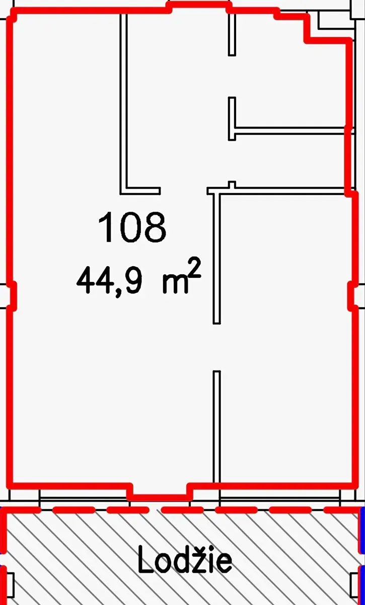 Byt se skládá ze vstupní chodby, koupelny, samostatného WC přístupného z chodby, obývacího pokoje s kuchyňským koutem a ložnice. Součástí bytu je také prostorná lodžie, která poskytuje příjemný venkovní prostor. K bytu náleží sklep.