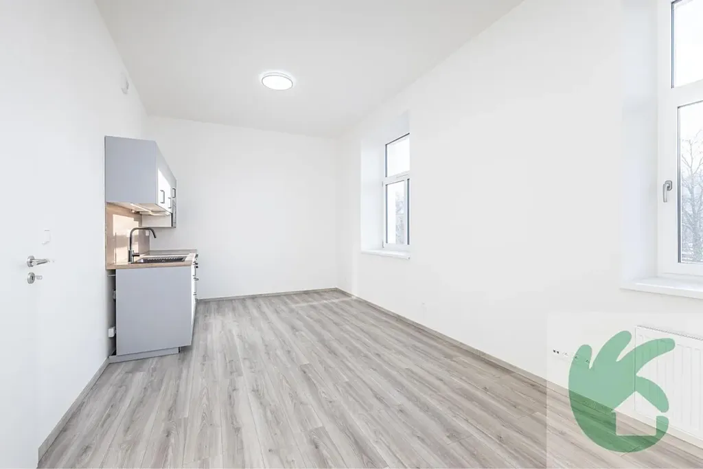 Byt je tvořen prostornou vstupní chodbou, kde se nachází skříň na uložení věcí. Dále z chodby vstoupíme do moderní koupelny, která disponuje prostorným sprchovým koutem umyvadlem a závěsnou skříňkou se zrcadlem a toaletou žebříkovým topením pro vyhřátí místnosti. Z chodby vstoupíme do pokoje, kde se nachází kuchyňská linka, která je vybavená s vestavnými spotřebiči (elektrickou troubou, varnou deskou, digestoří, mikrovlnou troubou). K bytu náleží komora, která je umístěna na stejném patře, jako byt. Rekuperace v celém bytě (řízené větrání s rekuperací tepla a čerstvým vzduchem do všech prostor, což zvyšuje komfort).
