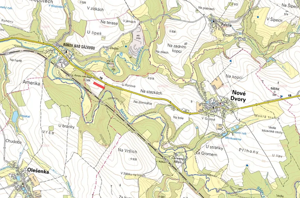 Parcela má pravidelný tvar a nachází se v blízkosti řeky Sázavy. Další výhodou je napojení na komunikaci – ostatní komunikaci ve vlastnictví obce, což zajišťuje stabilní a dlouhodobě řešený přístup k pozemku.