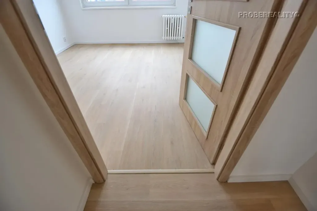VŠE VONÍ NOVOTOU: V celém bytě jsou položeny kvalitní vinylové podlahy v dekoru dubu sonoma a osazeny nové zárubně i dveře.