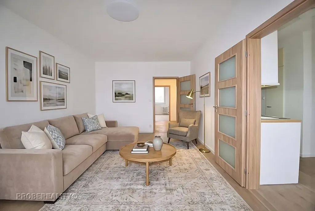 Nabízíme ke koupi světlý a prostorný byt 3+1 s lodžií o celkové ploše 76 m2. Byt se nachází v 6. patře udržovaného panelového domu v klidné části Modřan, jen pár kroků od oblíbené Modřanské rokle.