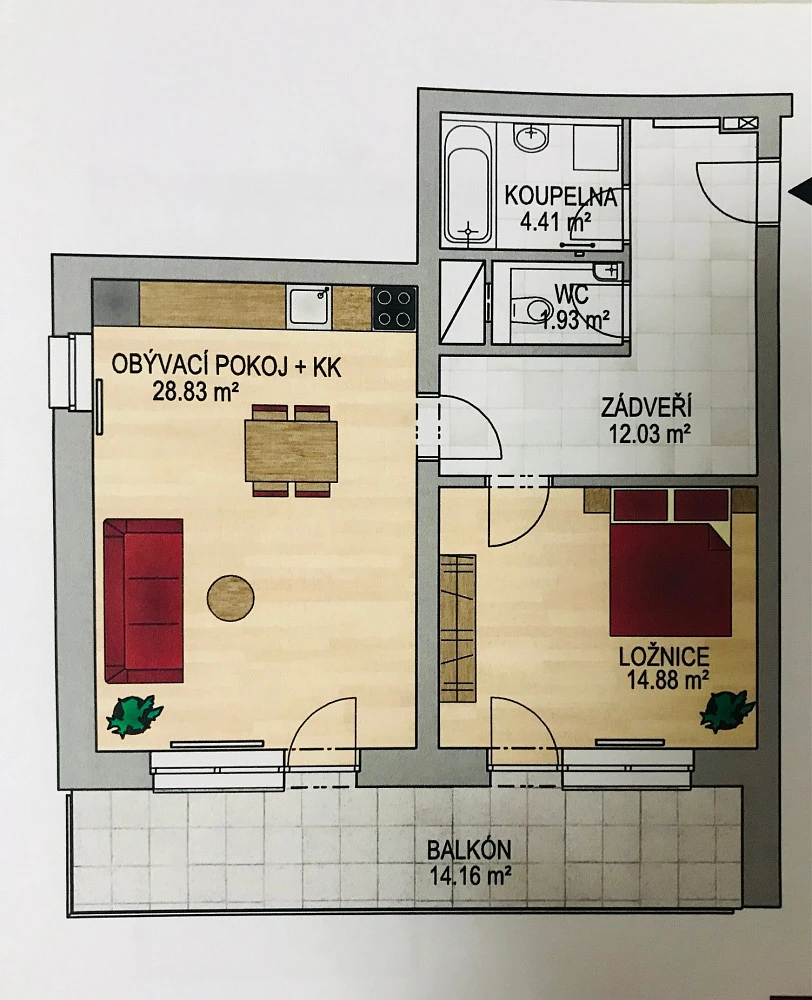 Byt je vybaven rovnou kuchyňskou linkou v moderním bílo šedém designu (součástí indukční varná deska, myčka 600 mm, led osvětlení, mikrovlnné trouba), kvalitními venkovními roletami ve všech pokojích, videotelefon. Vyšší standard - částečně vybaveno / možno dle dohody vybavení a zařízení bytu - sedací souprava, obývací stěna.