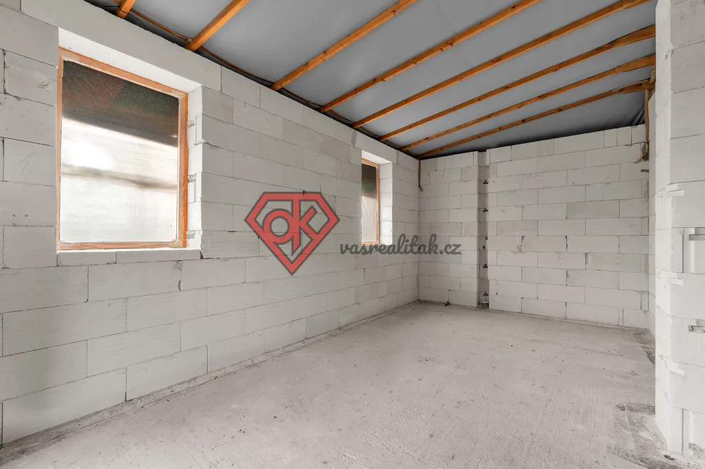 Součástí prodeje je také rozestavěná stavba, která je navržena jako rodinný dům: