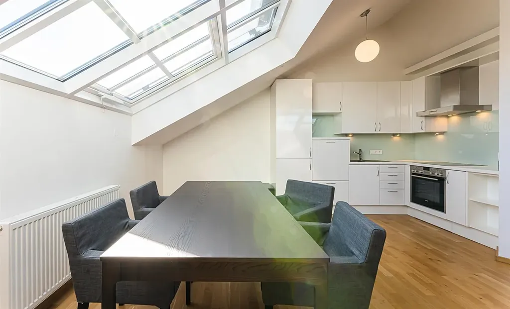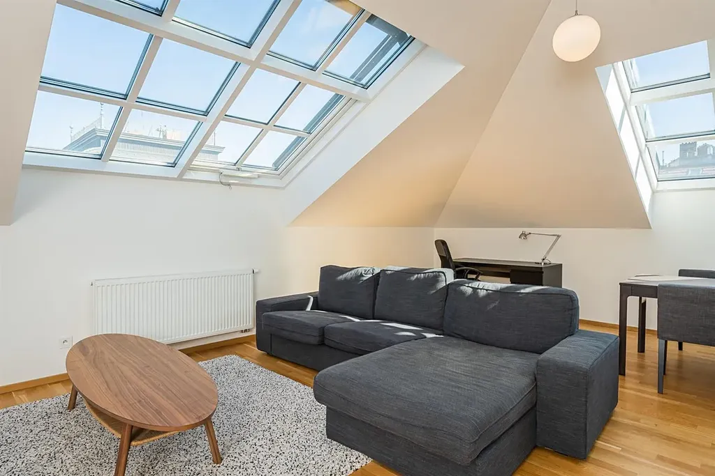 Prostorný mezonetový byt 2+kk, 94,51 m2 se střešní terasou o rozloze 37 m2, která nabízí hezké výhledy na centrum Prahy. Byt je situovaný v 6.NP a 7.NP rekonstruovaného rezidenčního domu s výtahem na Praze 2 Vinohrady, Balbínova ulice.