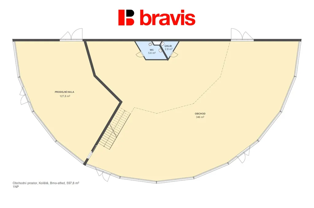 Nabízíme k prodeji montovaný showroom (600 m2) v Brně - centru, na ulici Koliště.