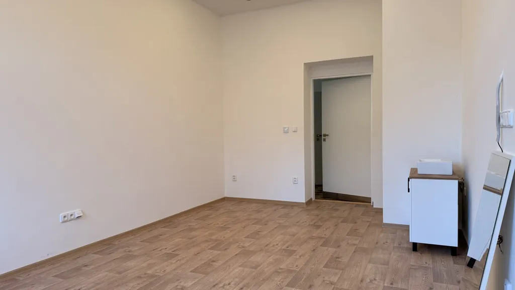 Velikost kanceláře je 19 m². Nachází se v 1. zvýšeném nadzemním podlaží u hlavní silnice. Ke kanceláři patří toaleta, která je umístěna přes chodbu na stejném podlaží. Bezproblémové parkování na parkovišti přímo před domem nebo v blízkých ulicích.