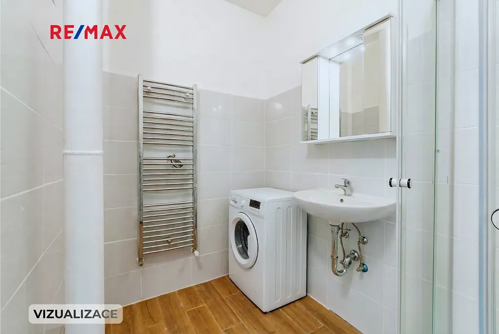 Nové zděné jádro: Koupelna a samostatné WC jsou po rekonstrukci včetně nových rozvodů vody a elektroinstalace v těchto částech. Designové obklady a sanitární technika odpovídají současným standardům.